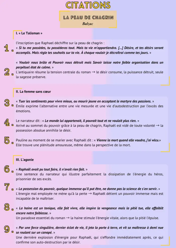 Voici une sélection de citations pour réussir vos dissertes sur La Peau de chagrin ainsi que pour les ouvertures et les accroches de vos explications.