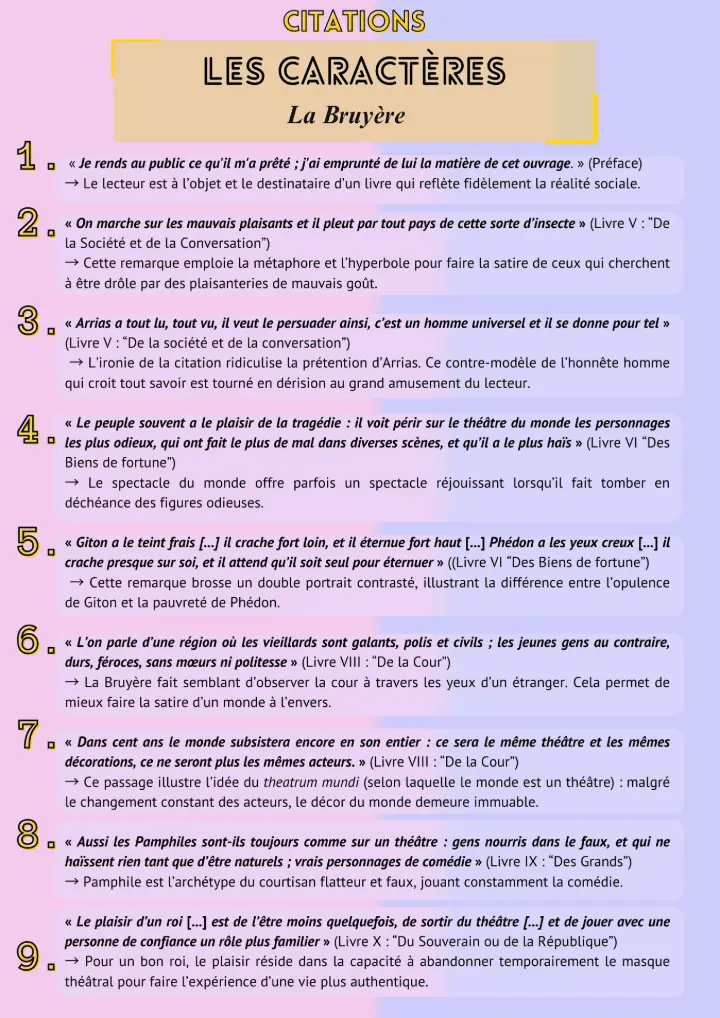 Voici une sélection de citations pour réussir vos dissertes sur Les Caractères ainsi que pour les ouvertures et les accroches de vos explications.
