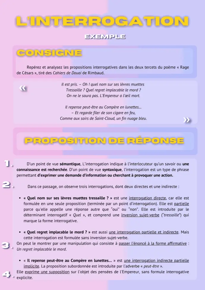 Repérer précisément la ou les proposition(s) interrogative(s), les analyser en suivants les points suivants et en justifiant à chaque fois vos remarques :