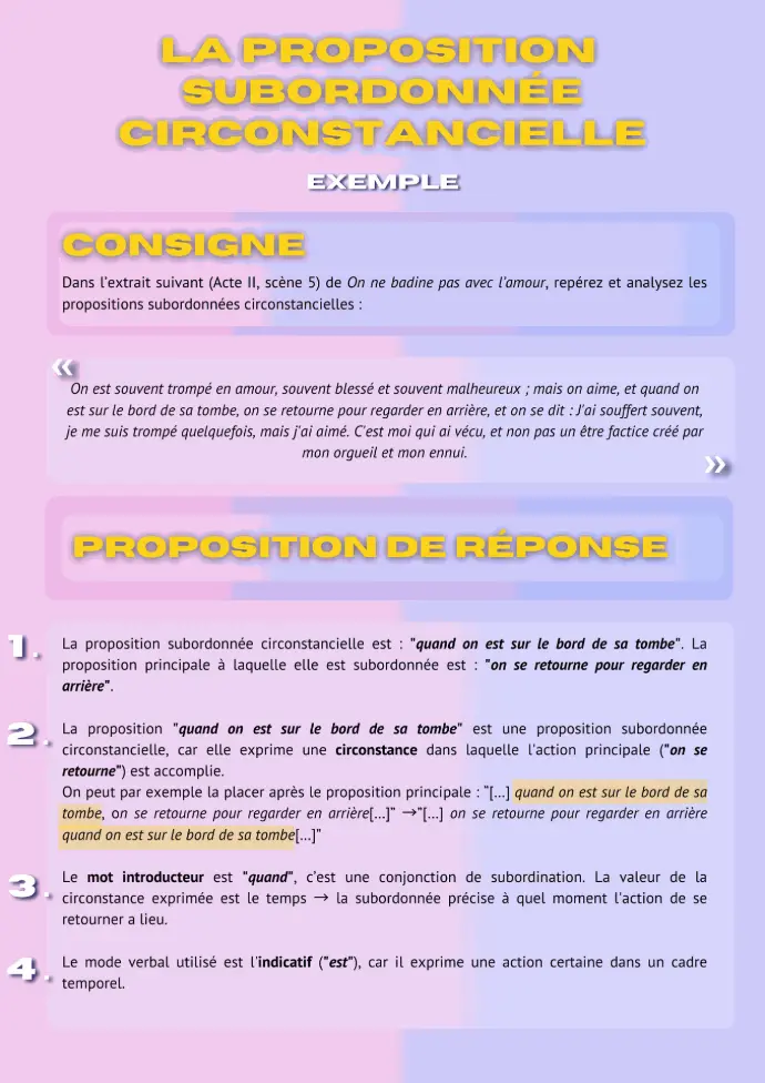Dans l’extrait suivant (Acte II, scène 5) de On ne badine pas avec l’amour, repérez et analysez les propositions subordonnées circonstancielles :